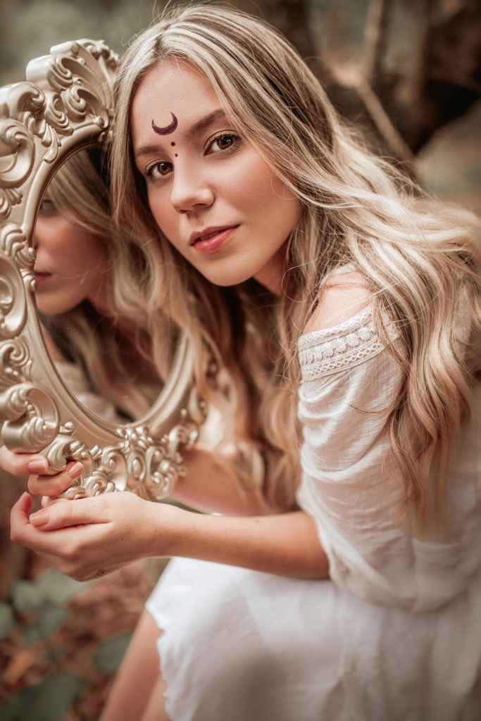 In 1996 I had a dream about a women with long blonde hair and even though the girl in the picture has brown eyes, in the dream she had aquamarine eyes that at times looked green and other times looked blue. She was dressed in a light blue Renaissance dress. She wore a pentagram around her neck symolizing she was a witch. She was pregnant.