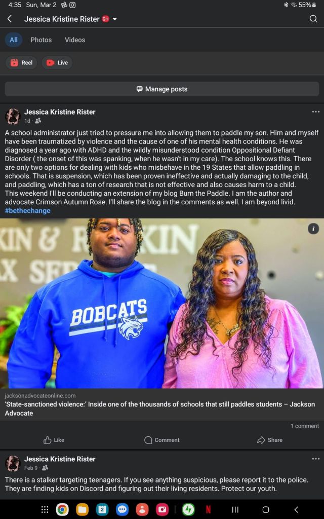 In the article I shared across my social media platforms Friday, decribed a family that went through a similar situation as mine (1) . If you haven’t, please read through that. The school admitration pressured her to paddle her child as well. Even went so far as going against her wishes and doing it anyway. The article raises some really good points, like little girls wearing dresses, hitting too hard, and the harm it really causes a child from being struck by an adult they are supposed to trust.